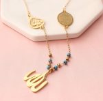This elegant necklace features 18K gold-plated stainless steel beads and a detailed Allah pendant. It’s a stylish and durable way to carry your faith with you.